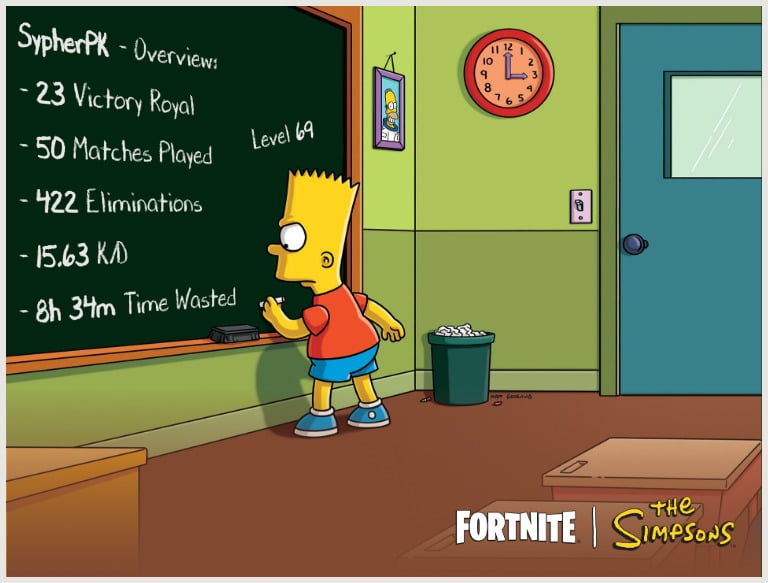 It is worth noting that this report might not be 100% accurate, as the stats on a website like Fortnite Tracker are slightly different. However, Fortnite Wrapped still provides a rough idea of how you played in the Simpsons season.