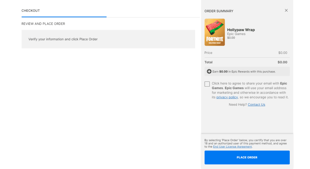 You can find this item on the Epic Games Store either online or through the Epic Games Launcher. Once there, you should see a category called 'Epic Extras,' with the Hollypaw Fortnite Wrap clearly visible. You should be able to claim the Wrap for free without issue.
