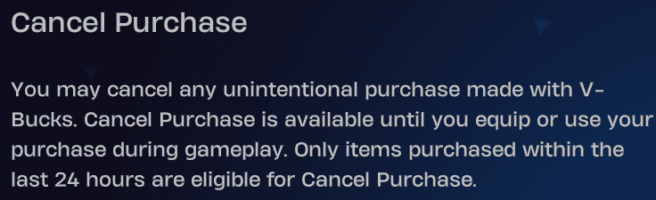 To qualify for a cancellation, you must refrain from equipping the Fortnite skin you purchased within 24 hours. Otherwise, you will need to refund the order.