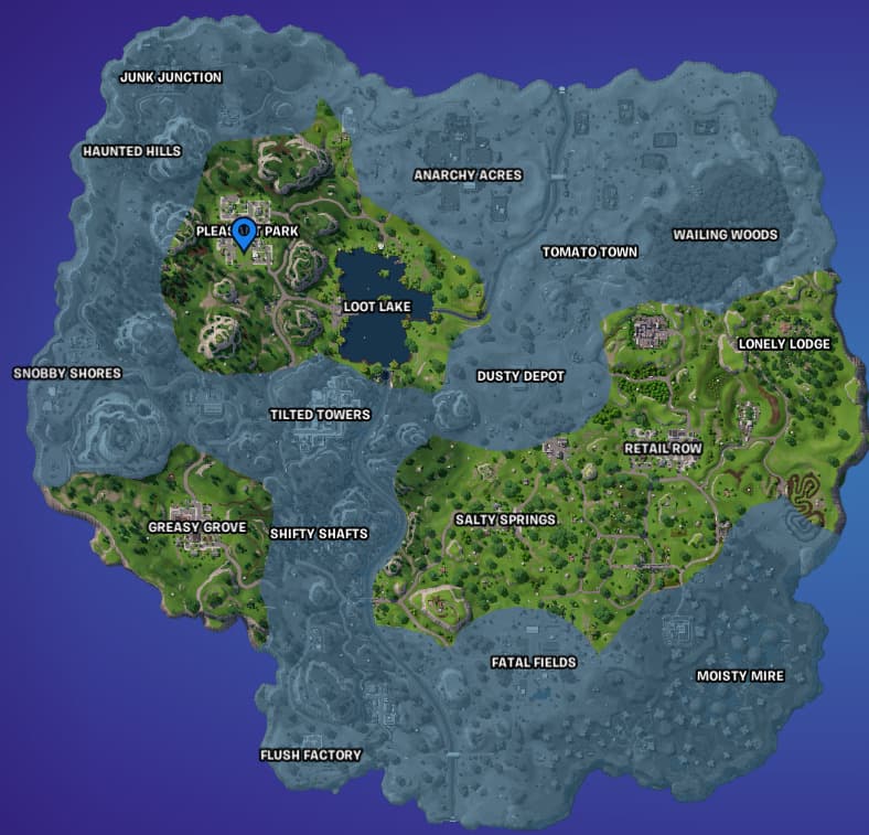 Your journey to complete this Quest begins at Pleasant Park, located on the map's northwest area. Although the Stadium landmark is another option, we couldn't find this location. You shouldn't have much trouble scoring a goal at the Pleasant Park point of interest (POI).