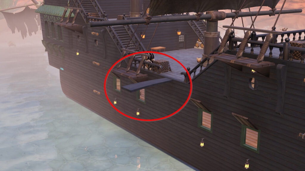 - Land on the pirate ship.