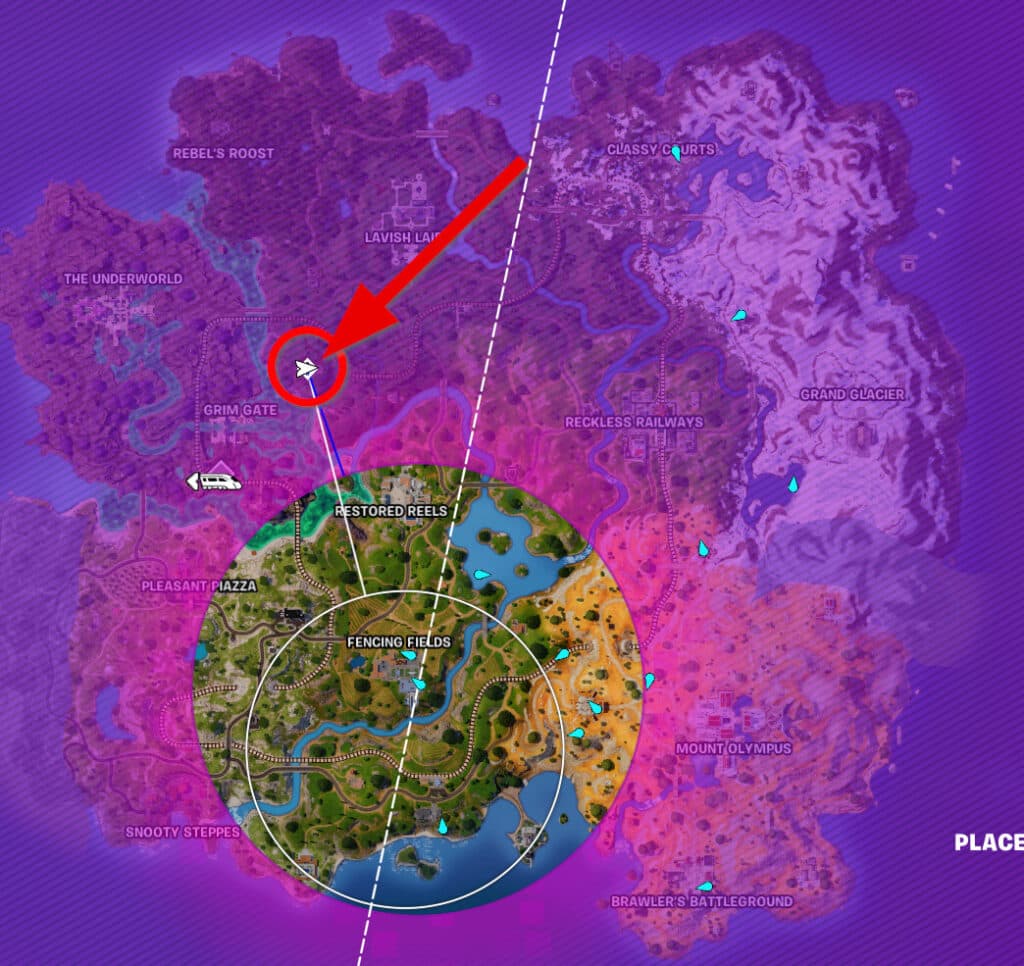 After finishing the "maybe on a grassy island" Fortnite Quest, you can head to the following location marked on the map above. This area is slightly northeast of Grim Gate, where you will find the second dog toy.
