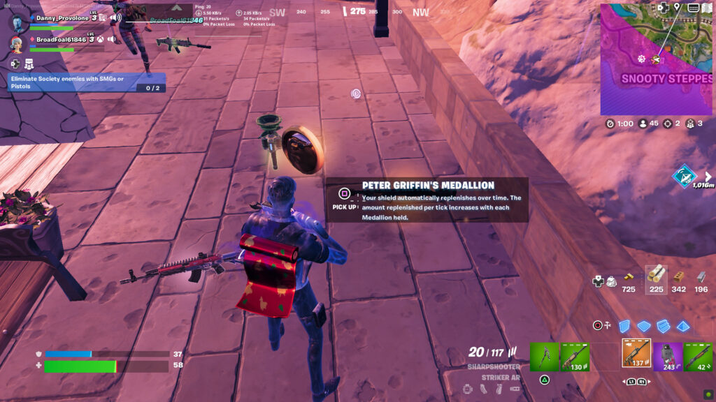 The second item Peter Griffin drops in Fortnite Chapter 5 is a Mythic Hammer Pump Shotgun. This weapon deals an incredible 199.8 max headshot damage. Like the Medallion, Peter Griffin’s Mythic Hammer Pump Shotgun is a worthy addition to your inventory.