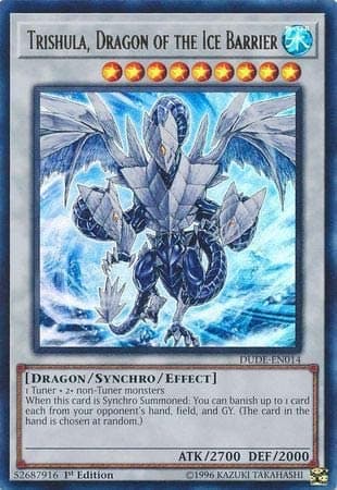 Trishula is an incredible Synchro monster that can really throw a wrench in the opponent's plans. When played, Trishula banishes one card from the opponent's hand, field, and graveyard. Once banished, most decks don't have any way to recover those cards. You significantly reduce the number of options the opponent has access to, as well as having a decent attack value.