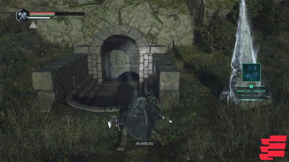Finally, head back towards the pillar next to the door and strike it with your weapon. This should open the locked door and complete the Martial Lineage mystery.