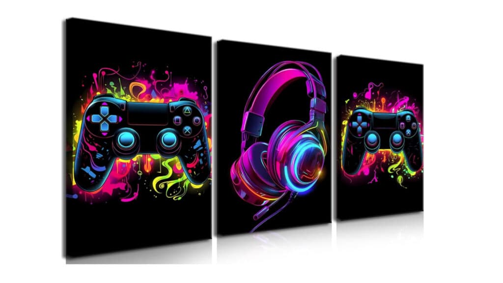 Canvases are also a great way to decorate an empty wall and make a bedroom more exceptional. These neon canvases are perfect for games that love some color in the spaces. They come with three canvases and measure 12x16 inches. It's perfect for any gamer, no matter what age they are.