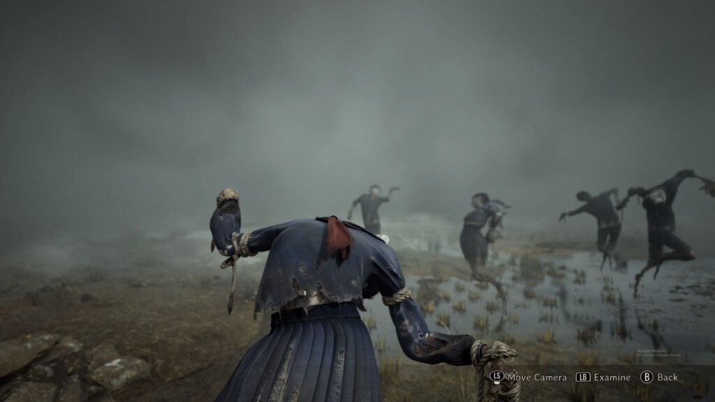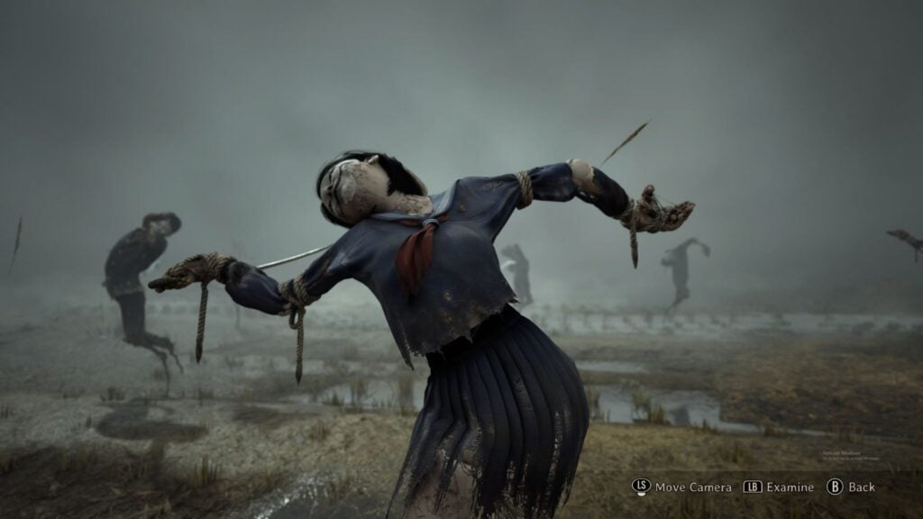 The final obstacle on the way to Rinko’s house is the scarecrow puzzle in the fog-infested field.