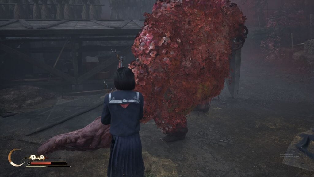 As soon as the fight starts, it will do a howling maneuver that can drain Hinako’s sanity. As such, dodge or run far away from the monster immediately. The best time to stagger it is when you see it preparing to charge towards you with its giant sword. Simply strafe left or right, as it is quite easy to dodge, while charging your focus attack. Once it stops, you will get a few seconds to land the charged attack, which will stagger it. As soon as it’s out, rain down light or heavy attacks, but be prepared to dodge away as soon as you see it moving.