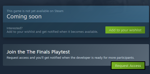 Although this does not guarantee you will get a closed beta key for The Finals, this is the best method. Players will need to first head on over to the Finals steam page. Once you are there, scroll down until you see the option box ‘request access’.