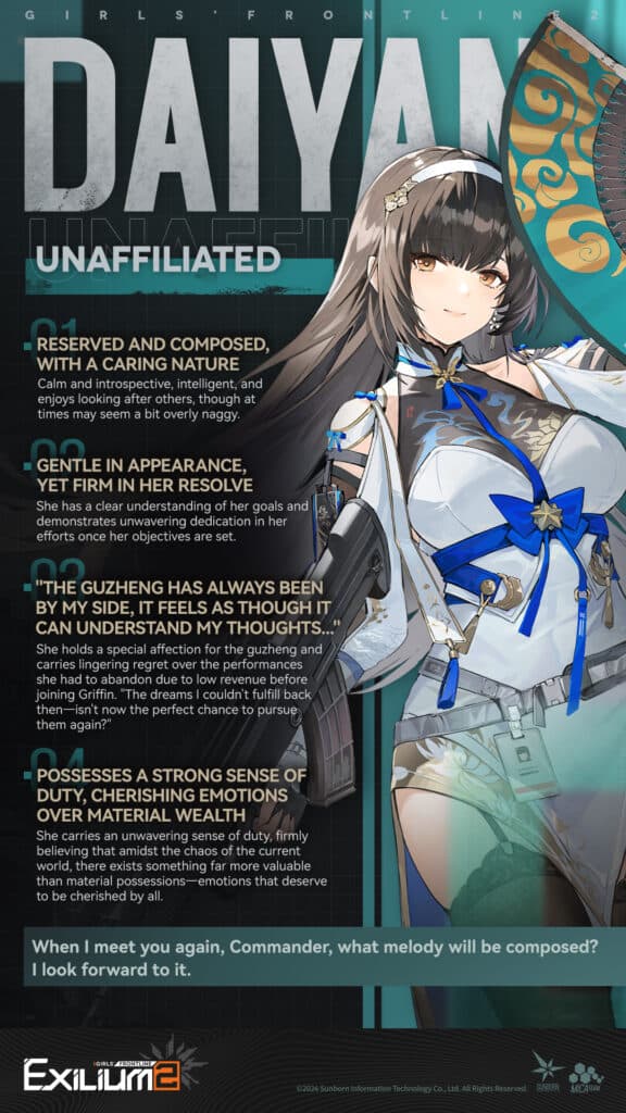 The characters were announced through Girls' Frontline 2: Exilium's official X (Twitter) account, with each post dedicated to introducing the character. However, aside from the character's key visual, which faction and classes they belong to, not much information was given at the moment.