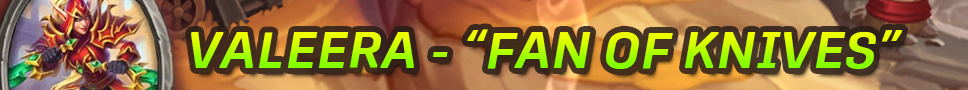 Valeera: “Fan of Knives” — Deal X damage to all enemies. Your other Mercs are (Y) Speed faster next turn.