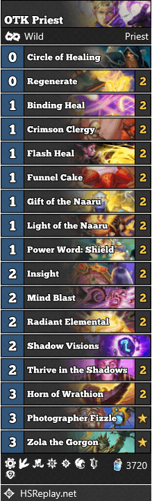 Given that the Hearthstone turn timer does not work for PvE content, this Dark Wander Tavern Brawl can be a bit exploited by APM combo decks. The OTK priest is a bit of that. The deck can perform the OTK super early and given the fact that has infinite damage, you can take both opponents down in the same turn. Here's how it works: