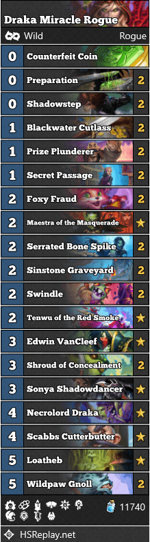This Wild version of Miracle Rogue revolves around the Necrolord Draka legendary. Having access to the full card collection, Clark’s dream of an APM OTK Rogue deck might be real in Wild. The deck is not suitable for boomers like me!