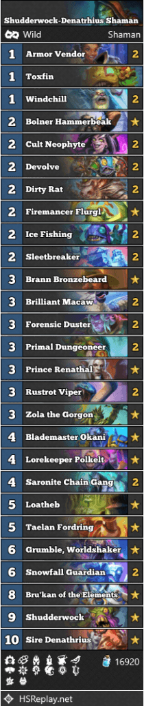 Wild Shudderwock Shaman deck, featuring Hearthstone’s new character, Sire Denathrius