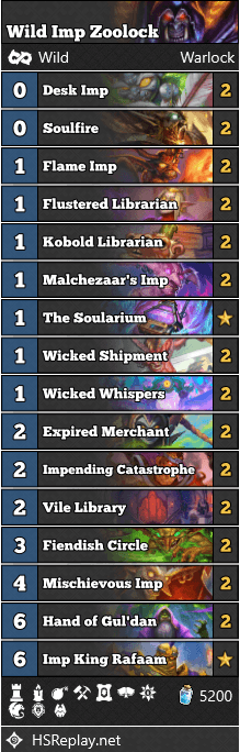 This Wild deck mixes discard and Imp synergies to present threatening boards while cycling cards looking for finishers. With the Vile Library, any minion left unattended by your opponent can become a gigantic threat.