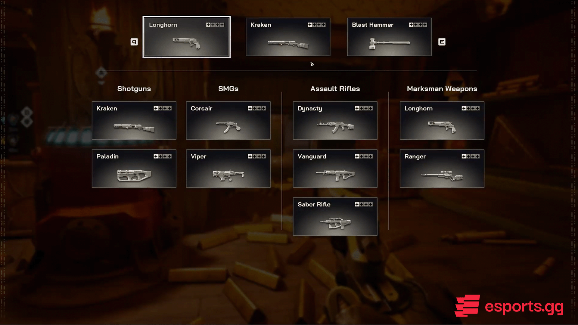 Highguard will launch with ten combat weapons; three Assault Rifles, two Shotguns, two SMGs, one Revolver, one Gatling Gun and one Sniper Rifle. Each Warden can only carry two combat weapons at any one time in addition to a siege weapon and a melee weapon.