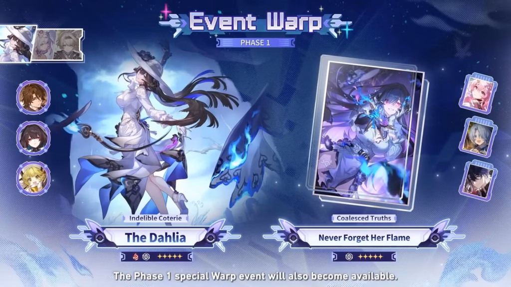For the Phase 1 reruns, the 5-star characters are: The Dahlia, Castorice, and Firefly. Their respective Signature Light Cones can also be drawn alongside them.