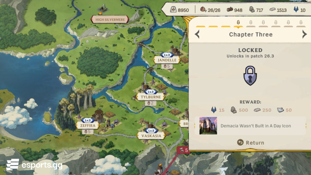 The first content update coming to Demacia Rising arrives alongside the LoL patch notes 26.3. Currently, Chapter Three is locked. In these patch notes, Riot Games is adding two new chapters of objectives and wrapping up the Act 1 story.
