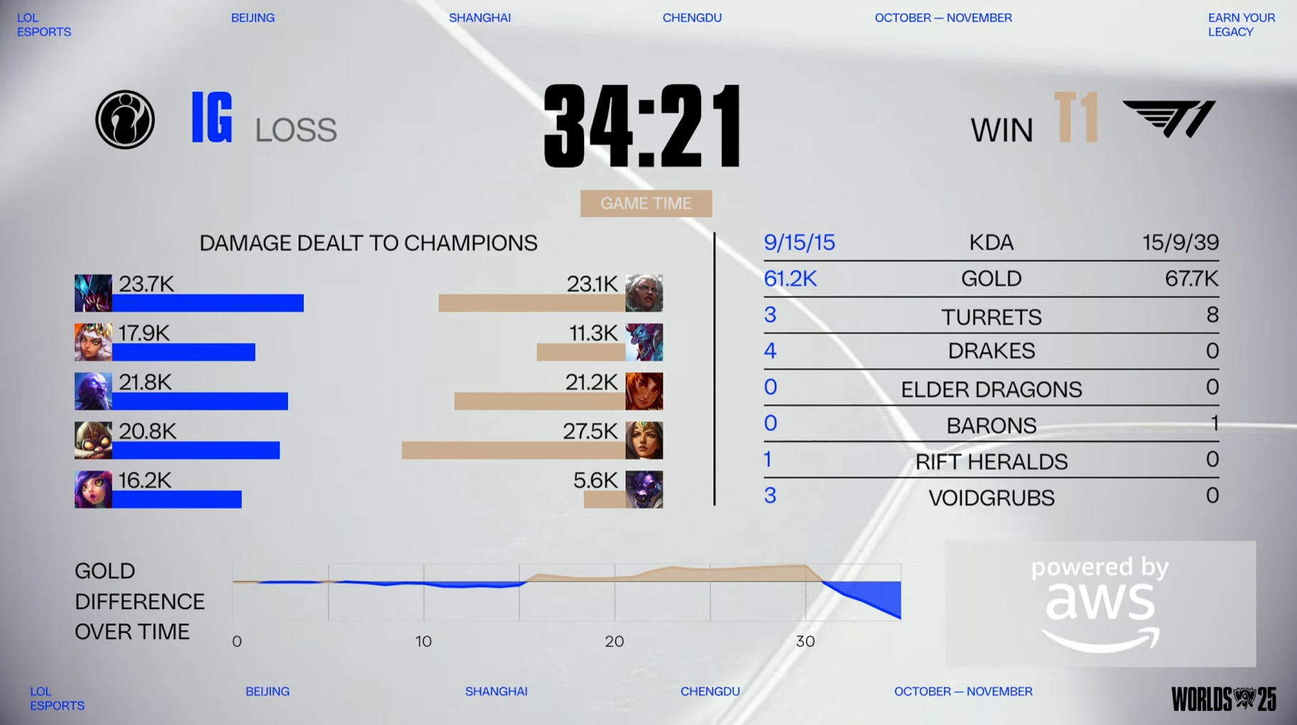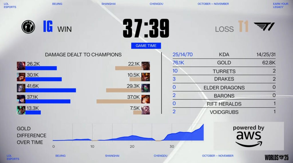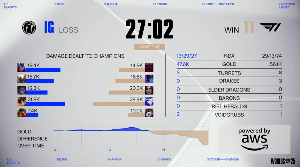The match between T1 and IG at the LoL Worlds 2025 starts at 1 p.m. PT / 10 a.m. CEST / 4 p.m. CST. It’s going to be held in the Beijing Smart Esports Center in Beijing, China.