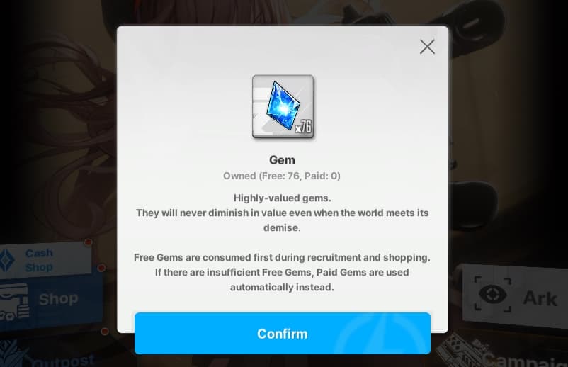The Cash Shop offers free Gems: 10 Gems per day, 50 Gems per month, and 100 Gems per month. These small amounts accumulate over time, providing around 600 free Gems per month.