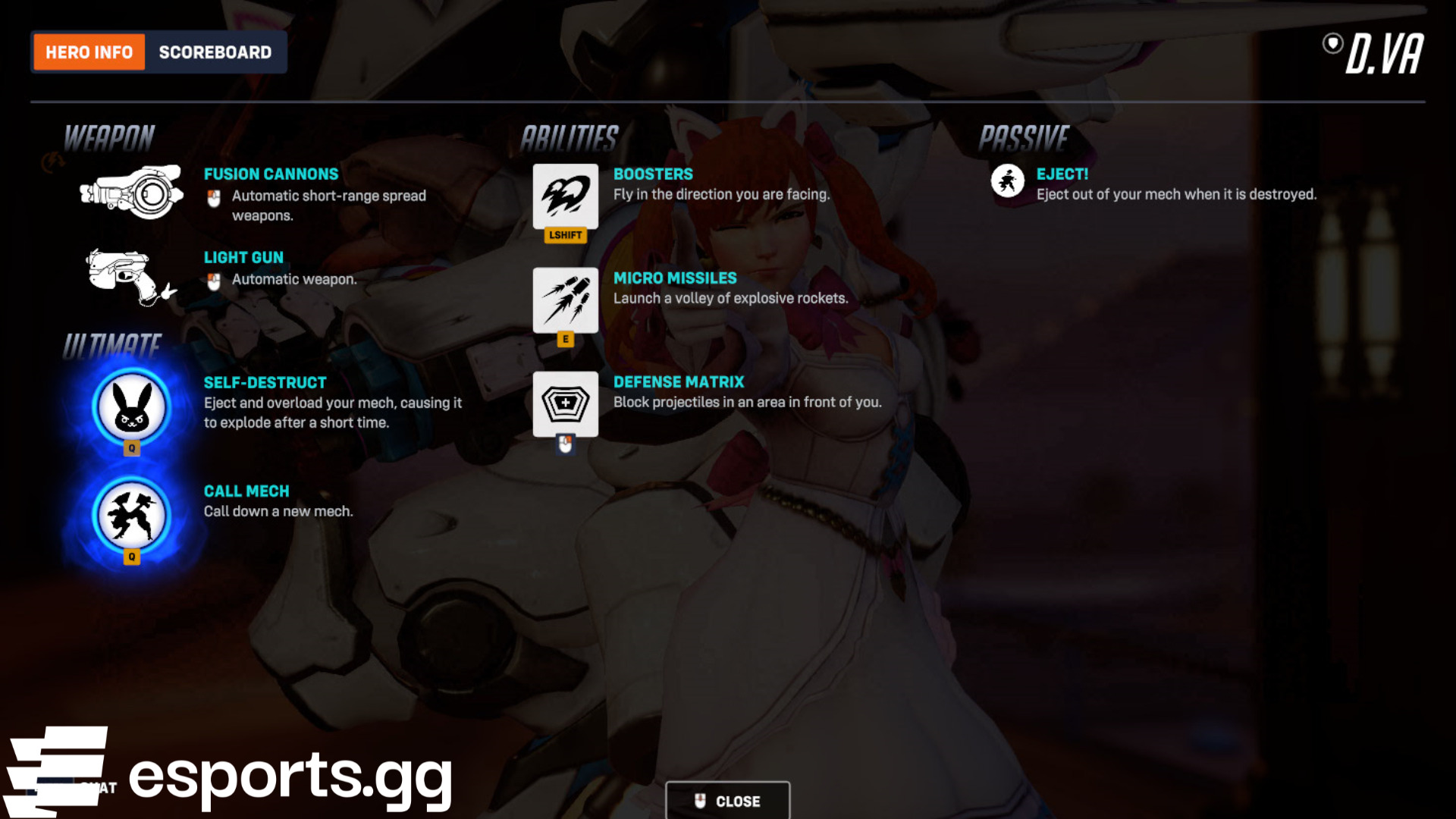Overwatch Classic D.Va abilities
