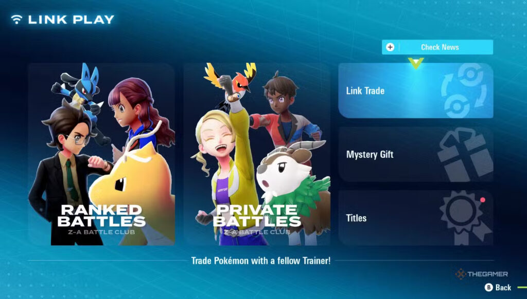 The only other way to collect all of Pokémon Legends: Z-A’s starter Pokémon before the game is over is to trade with someone. To do this, you must have access to Link Play, which is not available until you complete the first Mable mission.
