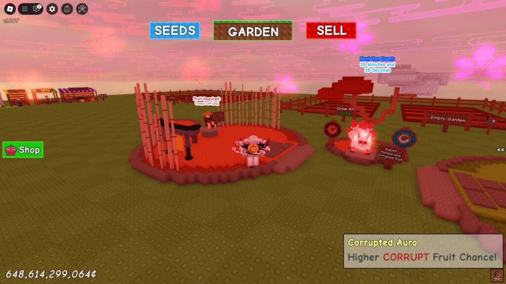 To obtain the Corrupted Mutation for your fruits, you need to stay online every top of the hour or basically during the Zen Event. To find out exactly when the Zen Event will begin, head to the Kitsune NPC at the center of the map and check the countdown timer above its head.