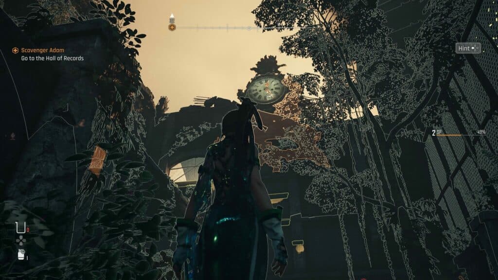 After finding the clock tower, press the touchpad to scan the area. This input will highlight the hands on the clock tower, providing you with the answer to this tricky Stellar Blade puzzle. The hands on the clock read 12:25, so head back to the locked door and enter the code '1225', and the door will open.