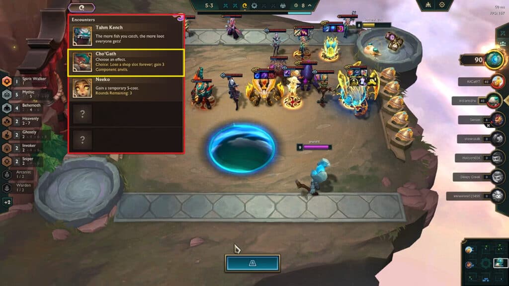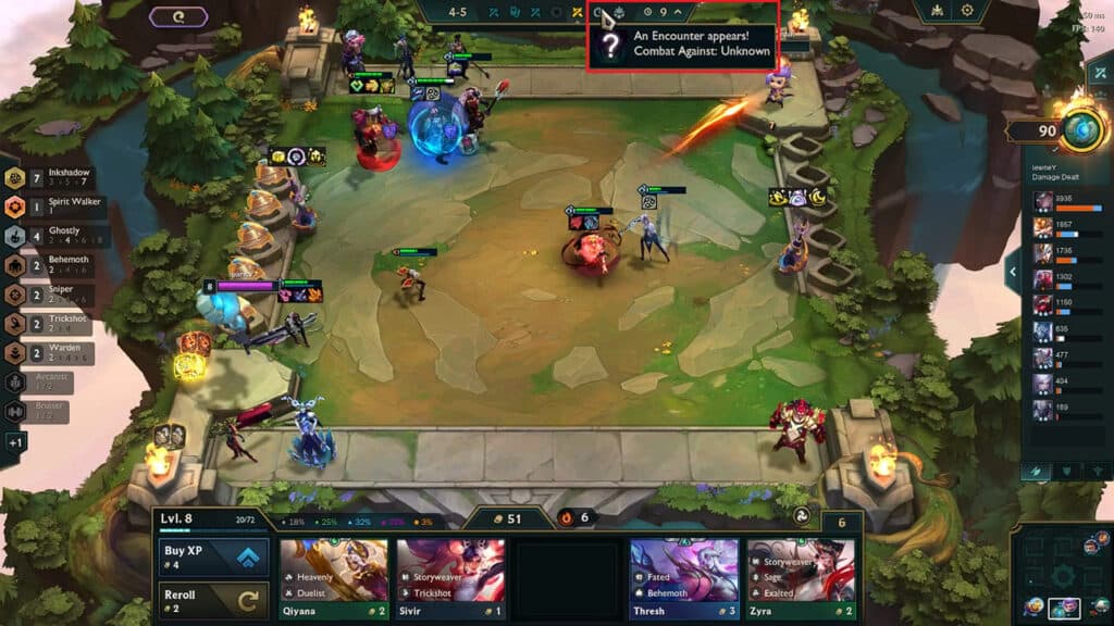 Another helpful thing to note is the icon in the Stage and Timer HUD notifying when an encounter will appear. These are denoted by special icons and can influence if you decide to roll early or wait to level and roll. For example, the Kha'Zix encounter that makes it cheaper to buy experience may make you want to wait an extra turn if you can afford to in your situation.