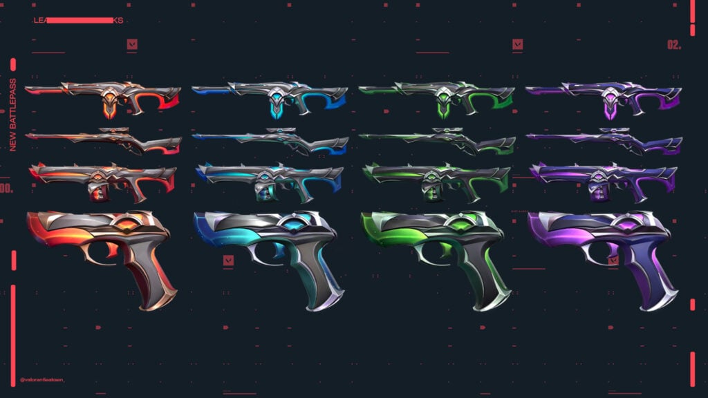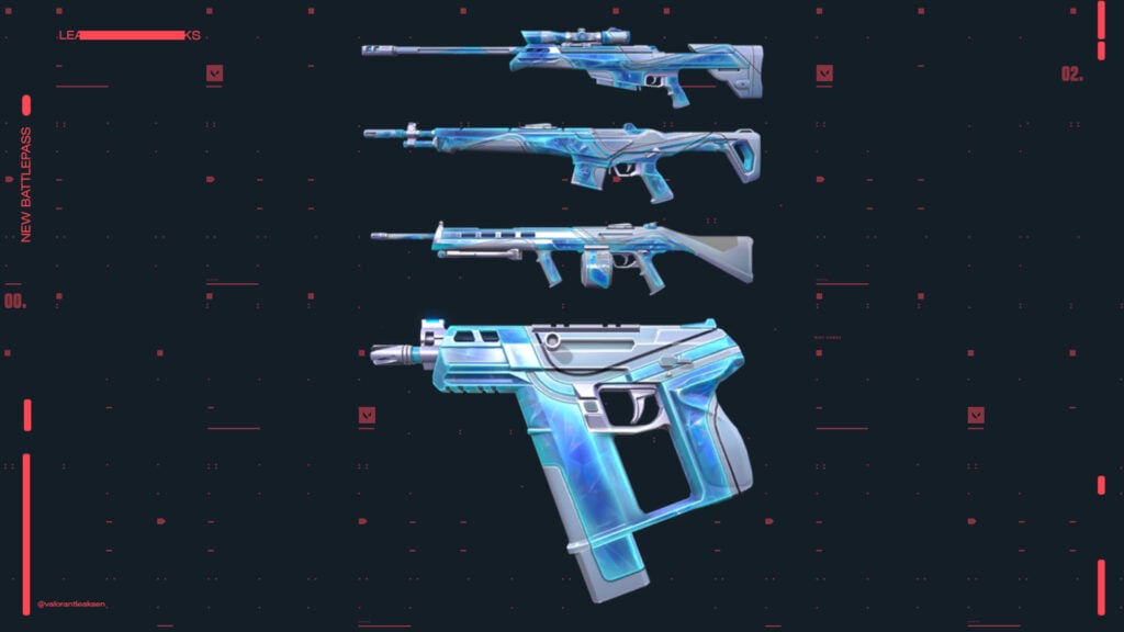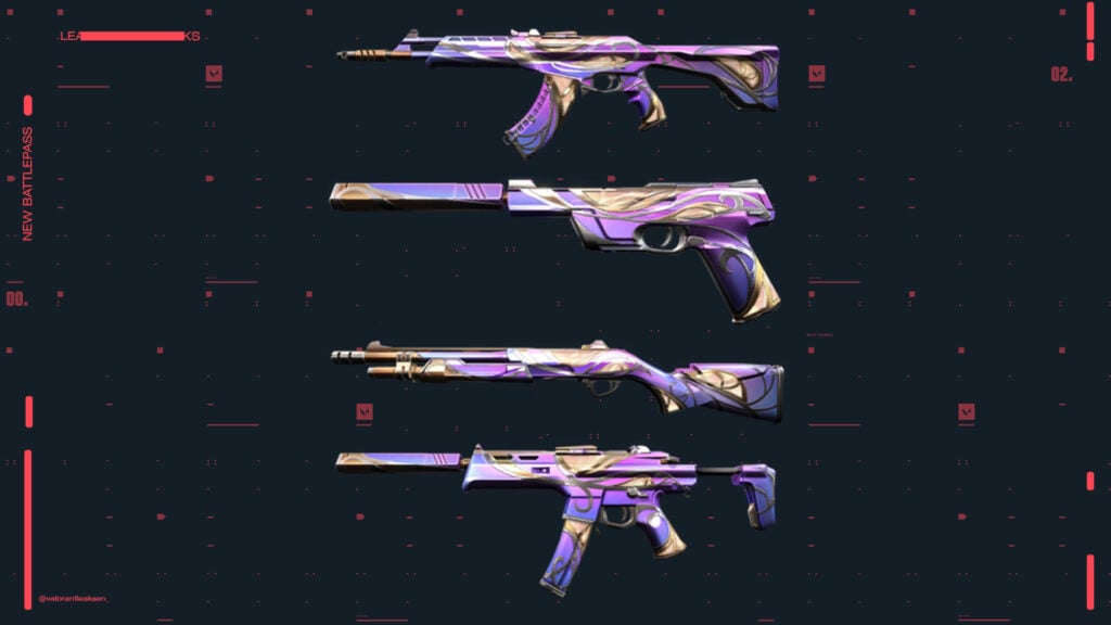 The Interhelm collection contains a phantom, a marshall, a judge, a classic, and a melee. In purple and gold tones, we get the Belaflaire collection, featuring a vandal, a ghost, a bucky, and a specter. Finally, the Haloform collection comes with an operator, a guardian, an ares, and a frenzy. You can check out all the skins in the gallery below.