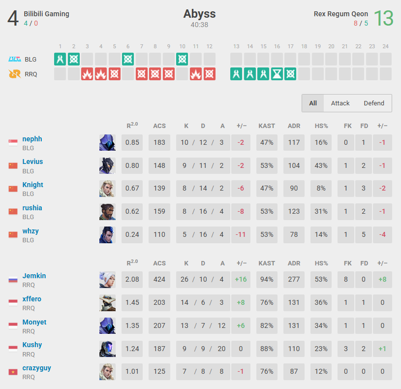 In the final map, Jemkin showed they weren’t going home without a fight. RRQ delivered an incredible performance on Abyss, excelling on both attack and defense. BLG couldn’t even secure a single round in the second half. If there were any doubts about RRQ’s firepower outside the Pacific region, this map proved they are far stronger than they showed at the beginning of the tournament. Bilibili Gaming was eliminated from the competition.