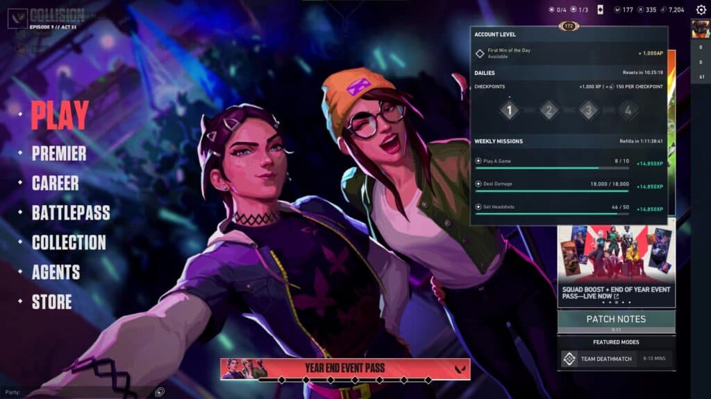 Again, you can get these Year End Event Pass rewards absolutely free just by playing VALORANT. Whether you're a Swift Play enjoyer, a Team Deathmatch fiend, or a ranked demon, there's a why for you to level up the pass.