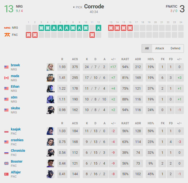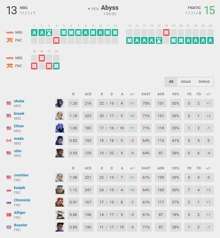 If you are one of those who still do not believe in NRG’s firepower, I hope this match is proving you wrong. Once again, FNATIC couldn’t run away from this roster attitude and strategy. The first half was clearly NRG, in a 9-3 score, but there is still a lot of VALORANT to be played. Can FNATIC reset and come back stronger?