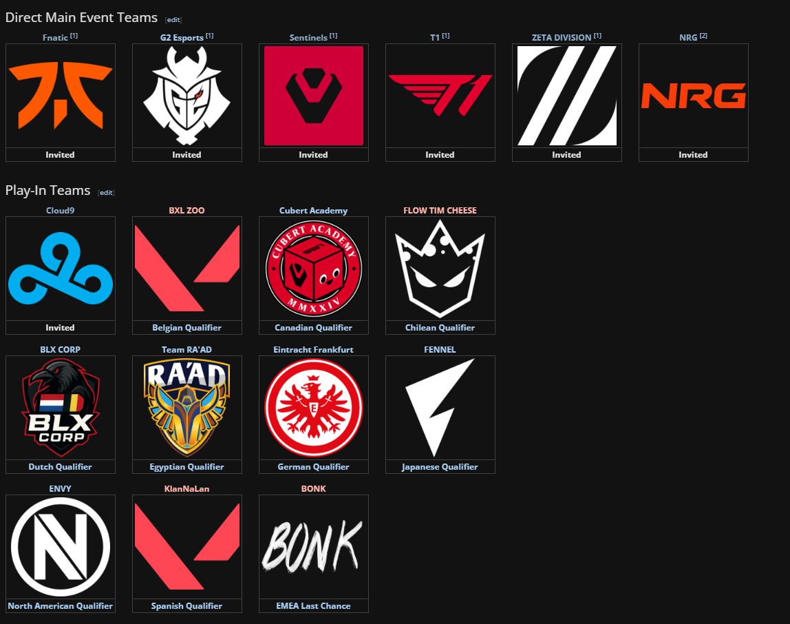 In the tournament, six invited teams have already secured their spots in the main event: Fnatic, G2 Esports, Sentinels, T1, ZETA DIVISION, and NRG. Meanwhile, eleven other teams must battle it out in the Play-In stage to prove their worth and earn a place in the main event.
