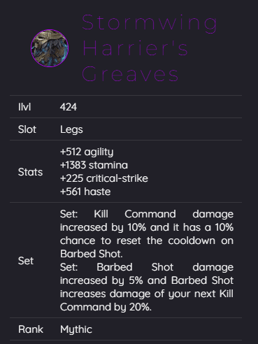 The Hunter tier-set bonus is an absolute must-have. Full stop. Without the full set bonus you're leaving a massive amount of damage on the table. If you don't have the full set then consider shoring up that damage by taking the Barbed Shot damage increase, but it's not quite the same. Luckily, the Revival Catalyst is live and should help you live your best life.