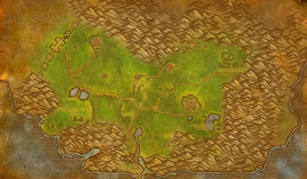 Head to the Stonewrought Dam and find the Eagle Figurine (/way 49, 12), which gives the next step of the quest, Eagle's Fist. The traveling continues, as you must now go through Arathi Highlands and over to Hillsbrad Foothills, at the Thoradin Wall.