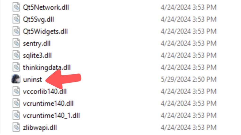 The folder for Wuthering Waves will pop up, hovering over the “launch” file by default. Scroll down a little until you find the “uninst” file among the list and click on it.