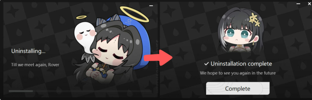 A prompt with Yangyang will ask – “Do you wish to remove “Wuthering Waves” and all its components?” Click “Uninstall”.