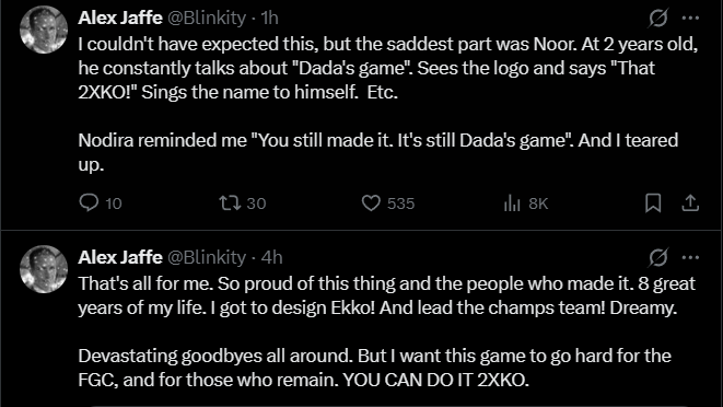 Despite the bitter ending, Miller says he is proud of 2XKO and the team and thanked the FGC for showing him love. It is unknown whether the rest of the team was given a similarly short notice of their dismissals.