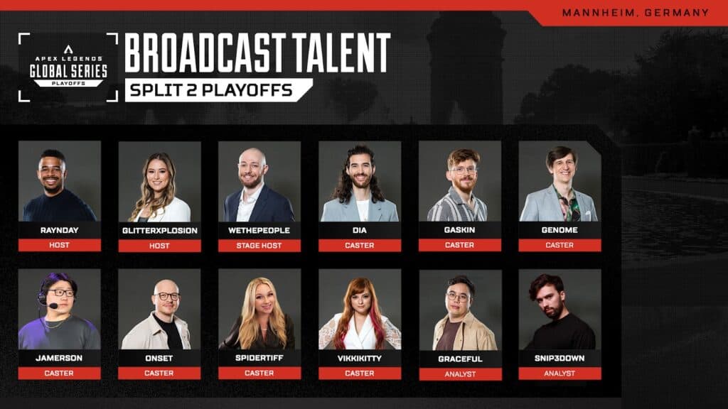 The ALGS have revealed their broadcast talent ahead of the ALGS Split 2 Playoffs in Mannheim, Germany later this month.