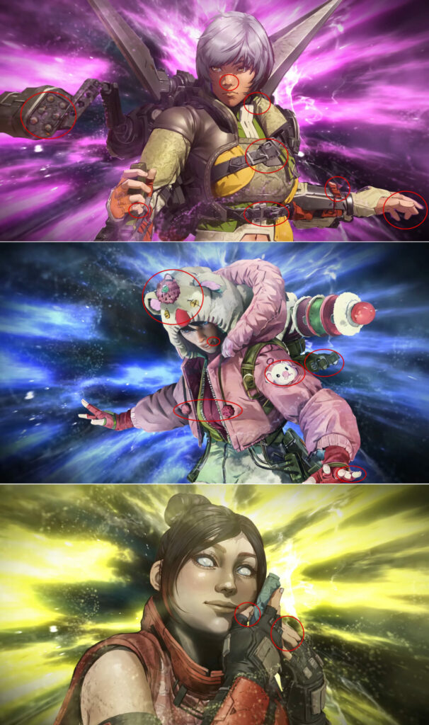 We can see the same issues with the hands on the promo art for Wraith’s Tifa skin.