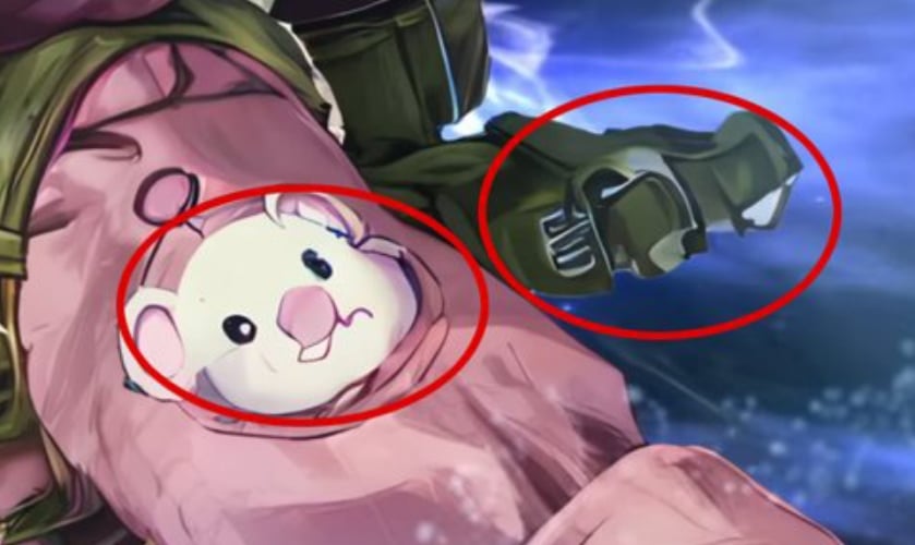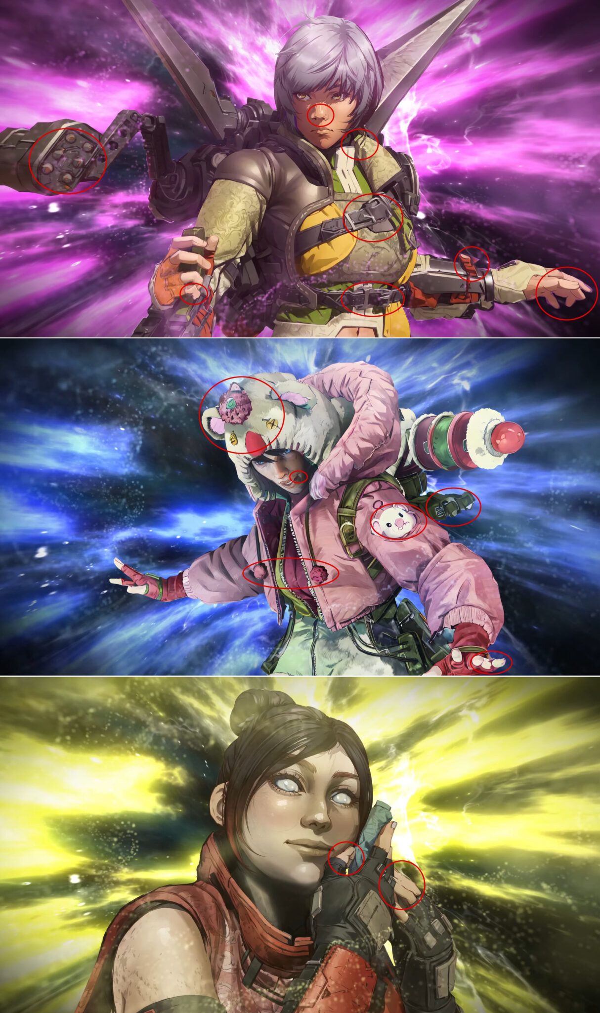 In addition, the “Mog” on her sleeve doesn’t look human-made but more a bout of confusion from the AI. Plus, Wattson’s Final Fantasy themed backpack for some reason has USB ports and the typical melting AI aesthetic we mentioned earlier.