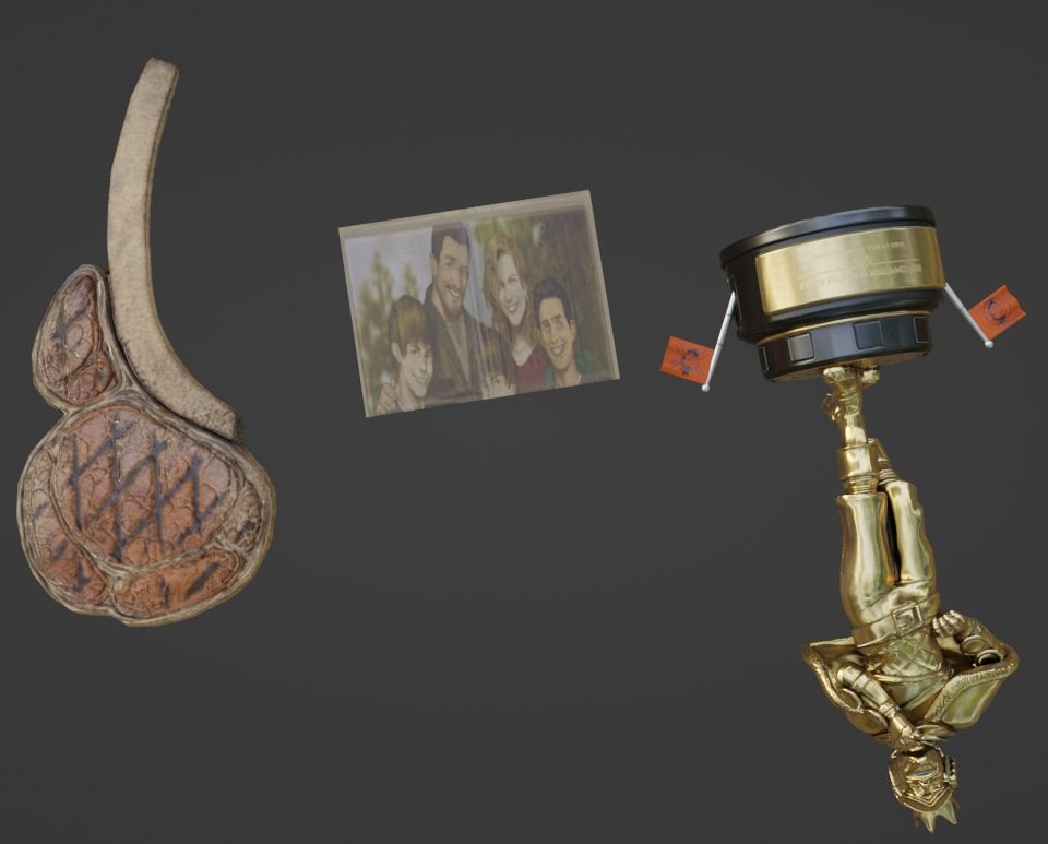 “It was actually supposed to be this picture or the picture of Mirage and his family as a kid (the one in the lore book) but it apparently never made it in the game for some reason. The plan was to have it hidden on the trophy that you see randomly during rare inspections,” Hagopian said.