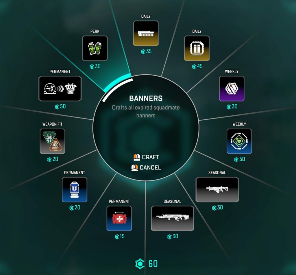 Blue Bins will become visible locations on the map. These will provide “key rotation options” when the team needs meds or survival items. Support legends will also be able to recover ally banners at Crafting Stations, even if the banner has expired. It will cost 30 Crafting Materials. This allows for even more options for teams to get back in the game.