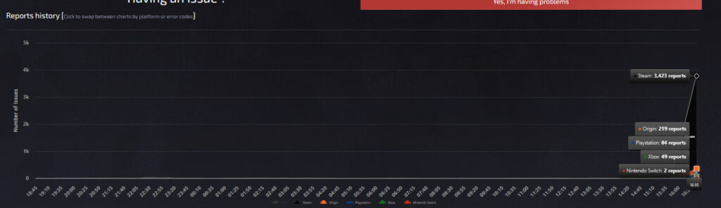 Down Detector is a third-party site that keeps track of online games’ servers, including Apex Legends. Here, you can check out issues that have already been reported by other gamers in the community. There’s even a chart that shows outage report data so you can get a better understanding of the game’s recent server history.