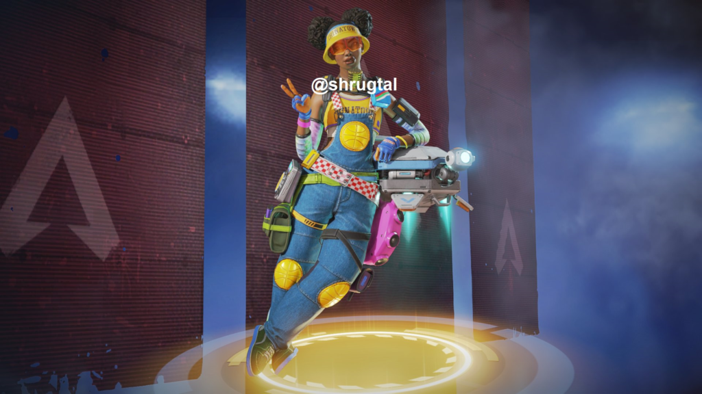 Another 4 item set in the Apex Market skins collection is the Mic Check bundle for Lifeline. This great bundle includes the Mic Check skin, the Regal Spike G7 Scout skin from the Iron Crown event, a Lifeline bobblehead weapon charm and Lifeline’s epic Bust a Move emote. This unique beatboxing set has some great colors as well as showcasing some great hairstyling. The bright colors of the skin compliment all the bright new colors of Storm Point.