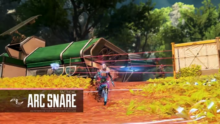 The Arc Snare is a throwable tether that can snare enemies for a short time. It travels slowly, although this was improved when Ash’s heirloom was released.