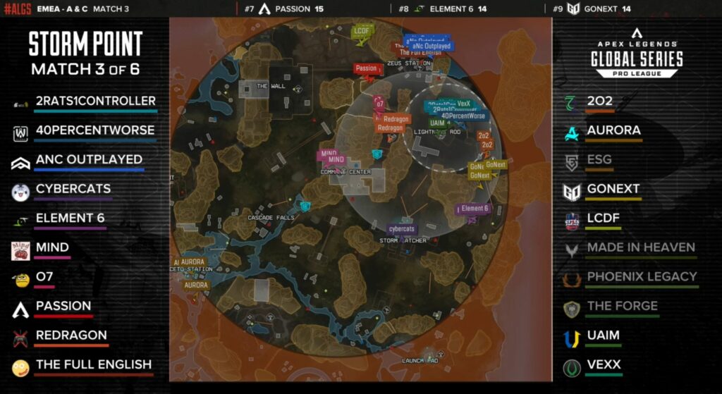 This strategy was evident in the third game of Storm Point. Aurora took their time to arrive at Lightning Rod. At one stage, they were completely isolated on the map. The day’s champions were in Ceto Station, crafting their armours and gathering as much loot as possible.