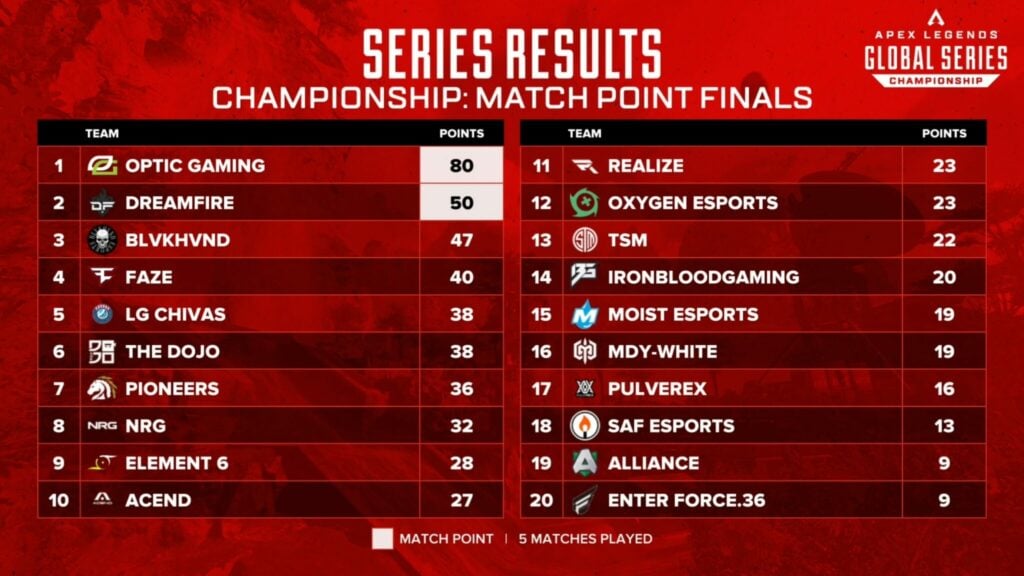 After five games, TSM found themselves way down in 13th, they weren’t even half way to match point. OpTic Gaming were banging on the door of victory incredibly hard, finishing second then third since they reached the 50 point threshold.