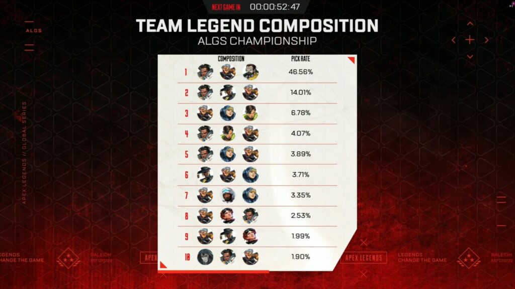 In the process of surprising the ALGS community, they also single handedly changed the meta. FURIA, under the watchful guidance of coach SeaLion, completely broke away from the established Valkyrie, Gibraltar, Caustic meta.